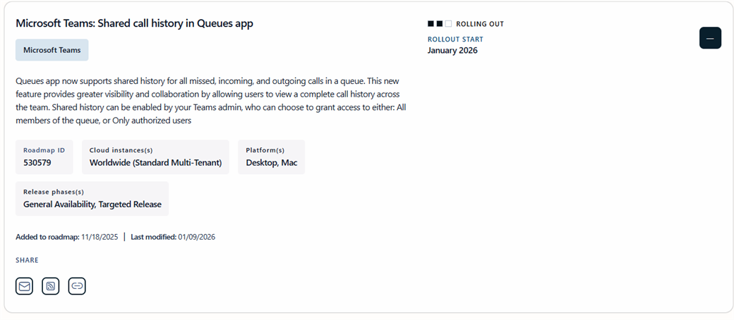 L’application Queues prend désormais en charge un historique partagé pour tous les appels manqués, entrants et sortants d’une file d’attente.