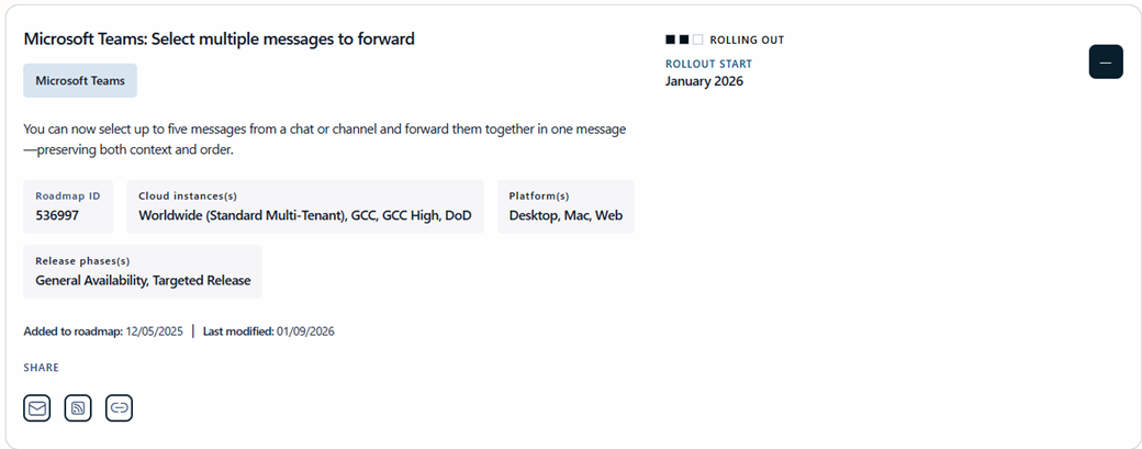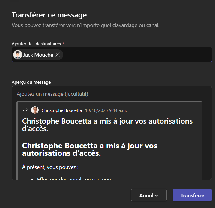 Les utilisateurs peuvent désormais sélectionner jusqu’à cinq messages depuis une discussion ou un canal et les transférer ensemble dans un seul message, tout en conservant le contexte et l’ordre.