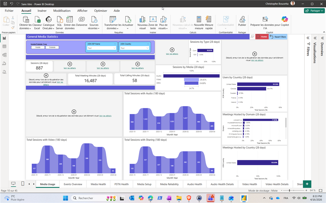 Au lancement, Power BI vous demandera peut-être de vous authentifier. Connectez-vous avec vos informations d'identification Azure AD qui disposent des accès nécessaires au Tableau de bord de qualité des appels (CQD) de Microsoft.