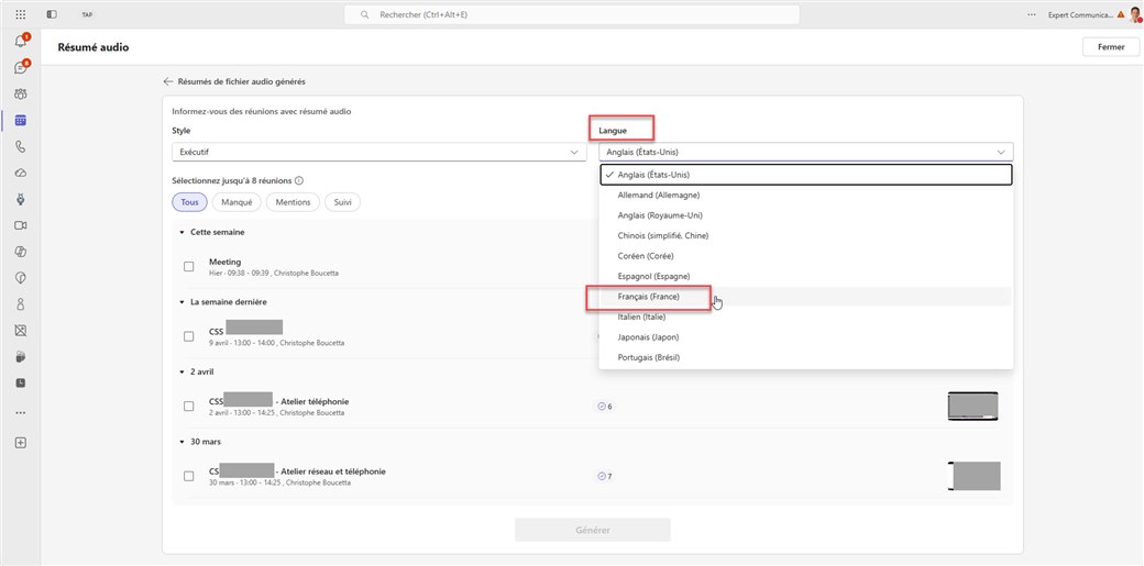 Prérequis, il est nécessaire de disposer de privilèges permettant d'avoir accès au call analytics