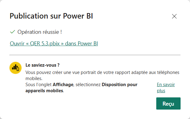 Vous pouvez maintenant publier ces rapports dans votre espace personnel PowerBI.
