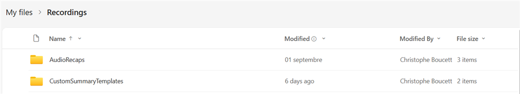 Les modèles sont enregistrés dans un nouveau dossier nommé CustomSummaryTemplates, situé dans votre dossier Enregistrements sur OneDrive.
