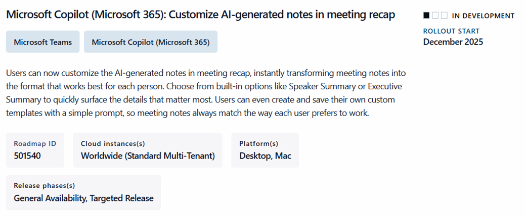 Une nouvelle fonctionnalité permettant de créer des résumés personnalisés par IA des réunions Microsoft Teams arrive pour les utilisateurs sous licence Microsoft 365 Copilot.