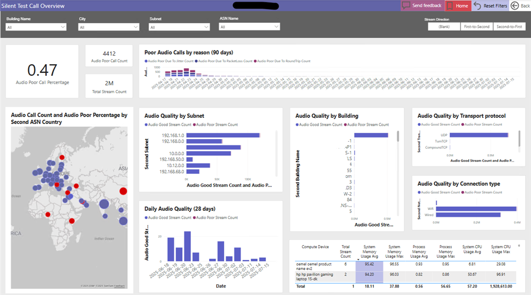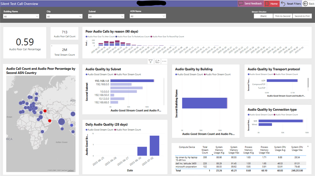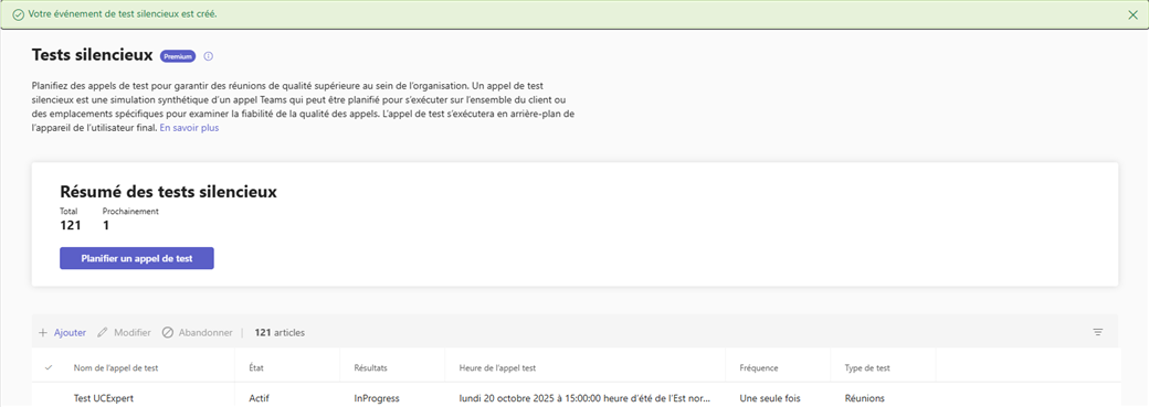 Un appel de test silencieux est une simulation synthétique d’un appel Teams qui peut être planifié pour s’exécuter sur l’ensemble du client ou des emplacements spécifiques pour examiner la fiabilité de la qualité des appels.