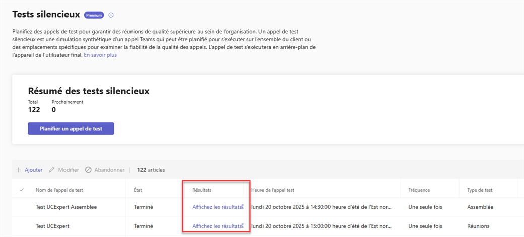 Une fois les tests effectués, les administrateurs peuvent consulter un rapport détaillant la qualité des appels et les éventuels problèmes détectés, leur permettant ainsi de prendre des mesures préventives afin d’améliorer l’expérience d’appel et de réunion des utilisateurs finaux.