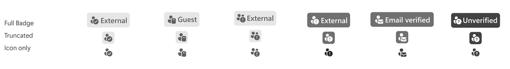 Les indicateurs de confiance sont des badges ou icônes visuels qui apparaissent à côté du nom des participants dans les messages de chat, les listes de participants, les appels, les résultats de recherche, les notifications, la liste d’activités et les cartes de profil.