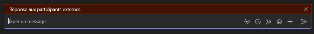 Au-delà des badges Trust Indicators, Teams affiche également une bannière d’alerte au niveau de la zone de rédaction des messages dans tout chat, réunion ou canal incluant des participants externes.
