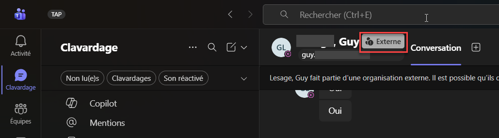 • [Microsoft Teams] Microsoft Teams introduit des badges visuels indiquant si un utilisateur est extérieur à votre organisation.