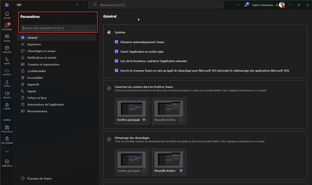 Les utilisateurs peuvent désormais retrouver plus facilement leurs préférences grâce à la nouvelle fonction de recherche intégrée dans l’application Paramètres de Teams.