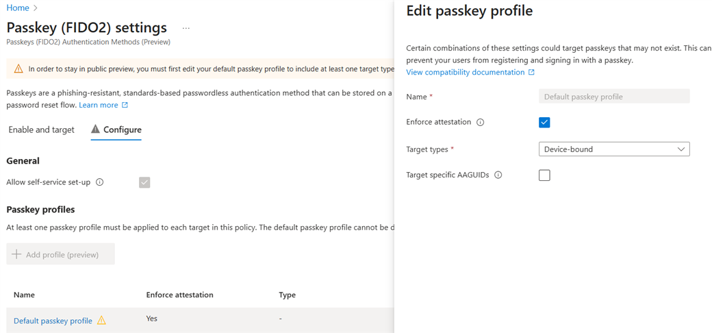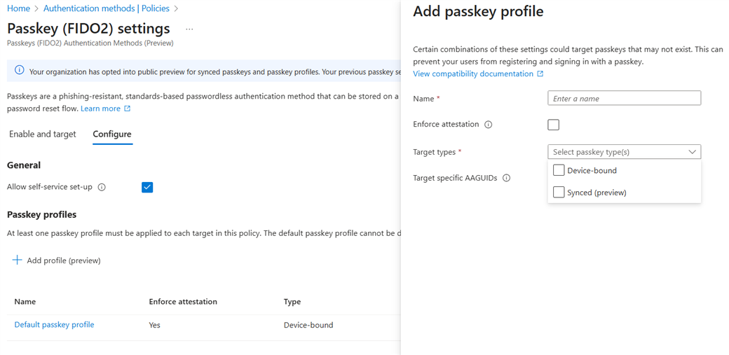 - Public Preview des profils de passkeys basés sur les groupes. Les administrateurs peuvent désormais déployer différents types de passkeys (FIDO2) à des groupes distincts, permettant des déploiements progressifs et ciblés.