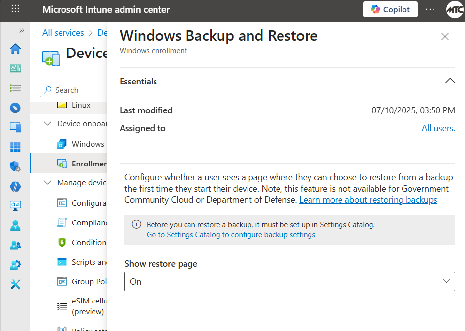 Une nouvelle propriété admin permet de contrôler l’affichage de l’option MDM, notamment pour les scénarios Windows MAM.