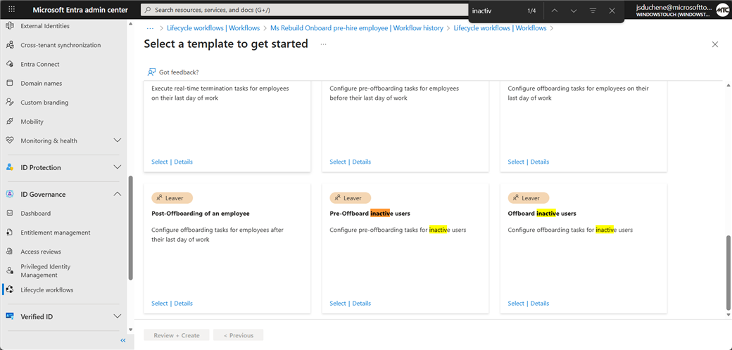 - Disponibilité générale du déclenchement de workflows pour les comptes inactifs. Les organisations peuvent automatiser la gestion des comptes dormants (notifications, désactivation, offboarding) selon un seuil d’inactivité configurable, réduisant les risques et le gaspillage de licences.